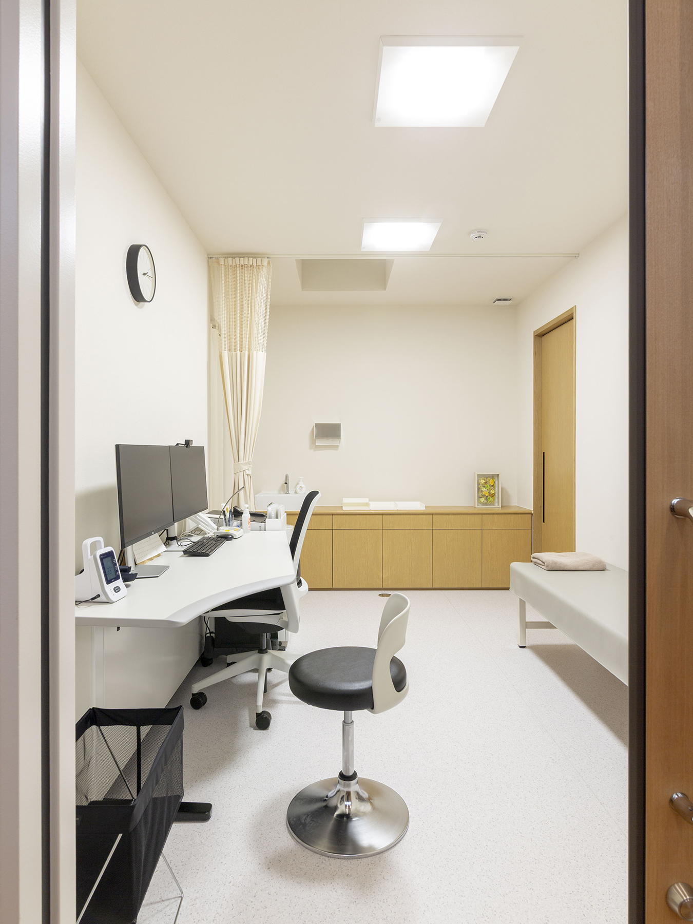 また、診察室には天窓を設け、時間帯によって変化する自然光をやわらかく取り込み、明るく清潔感のある環境を実現しました。