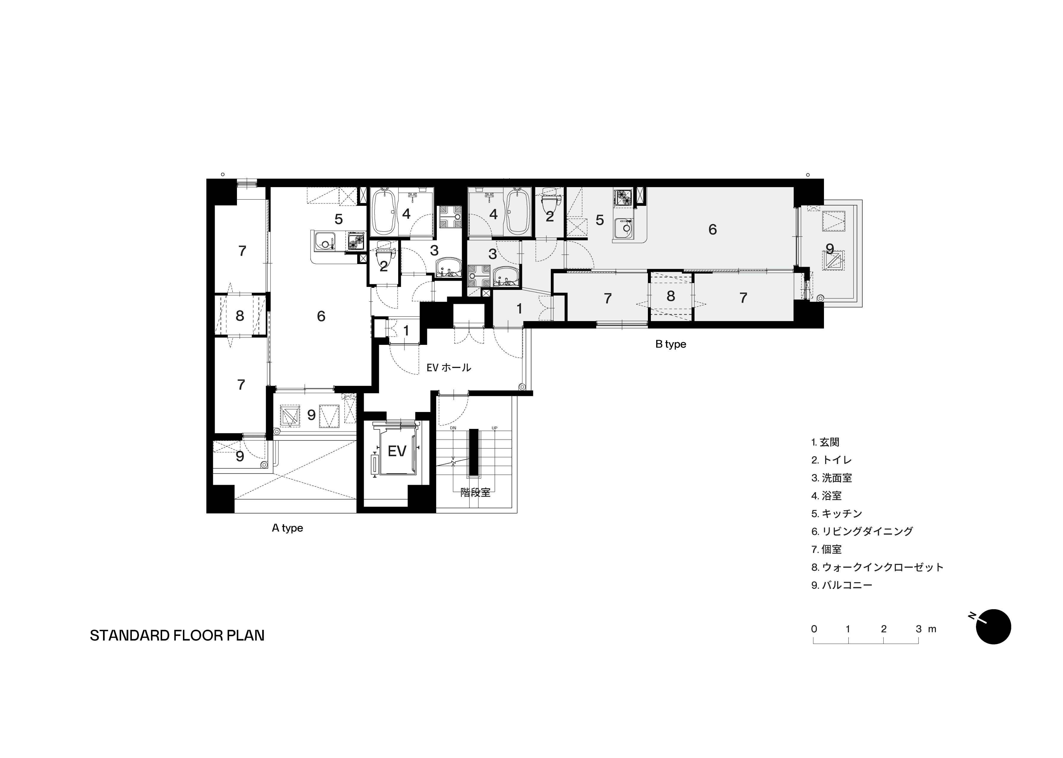 - 4F〜6F 共同住宅 1F〜3F テナント