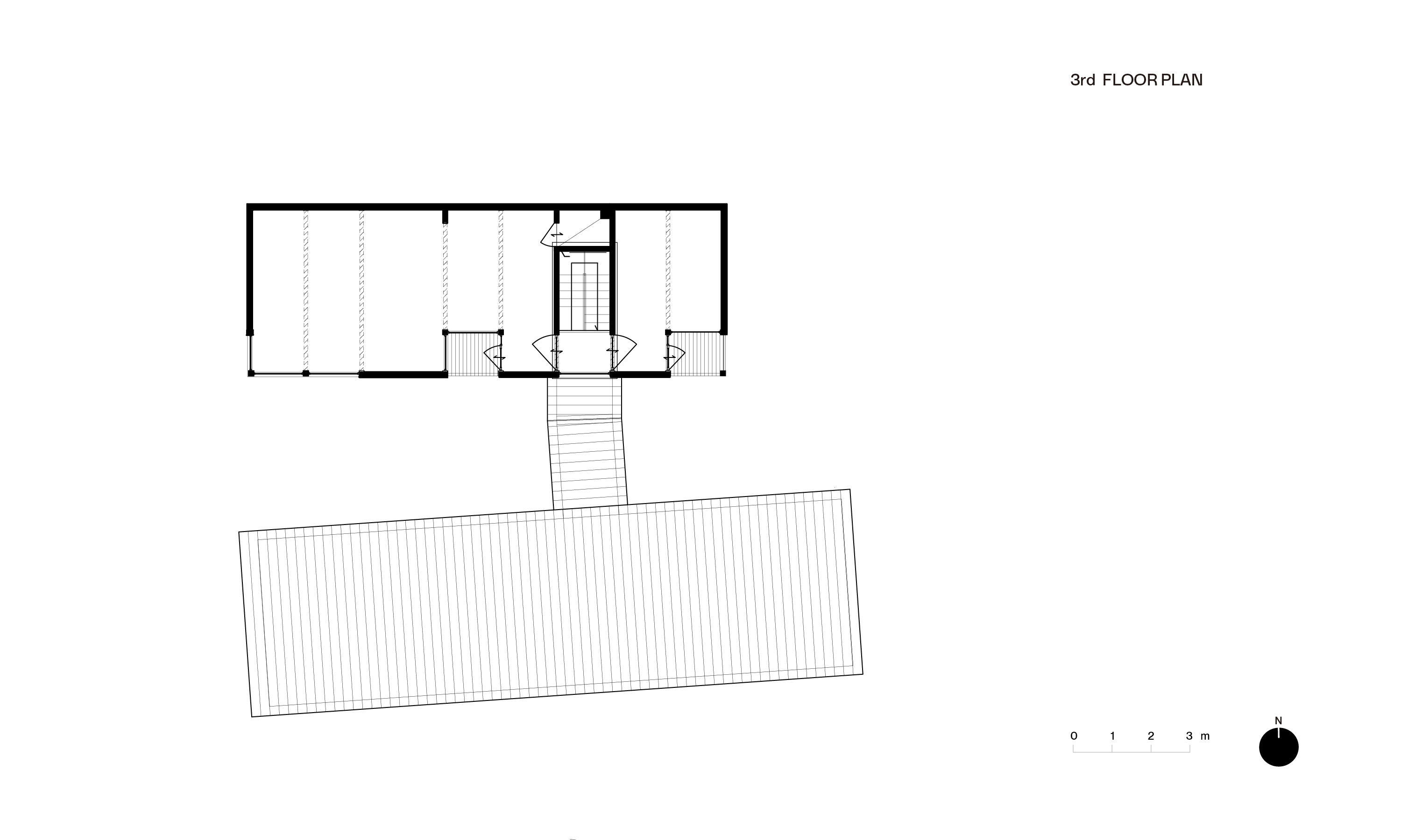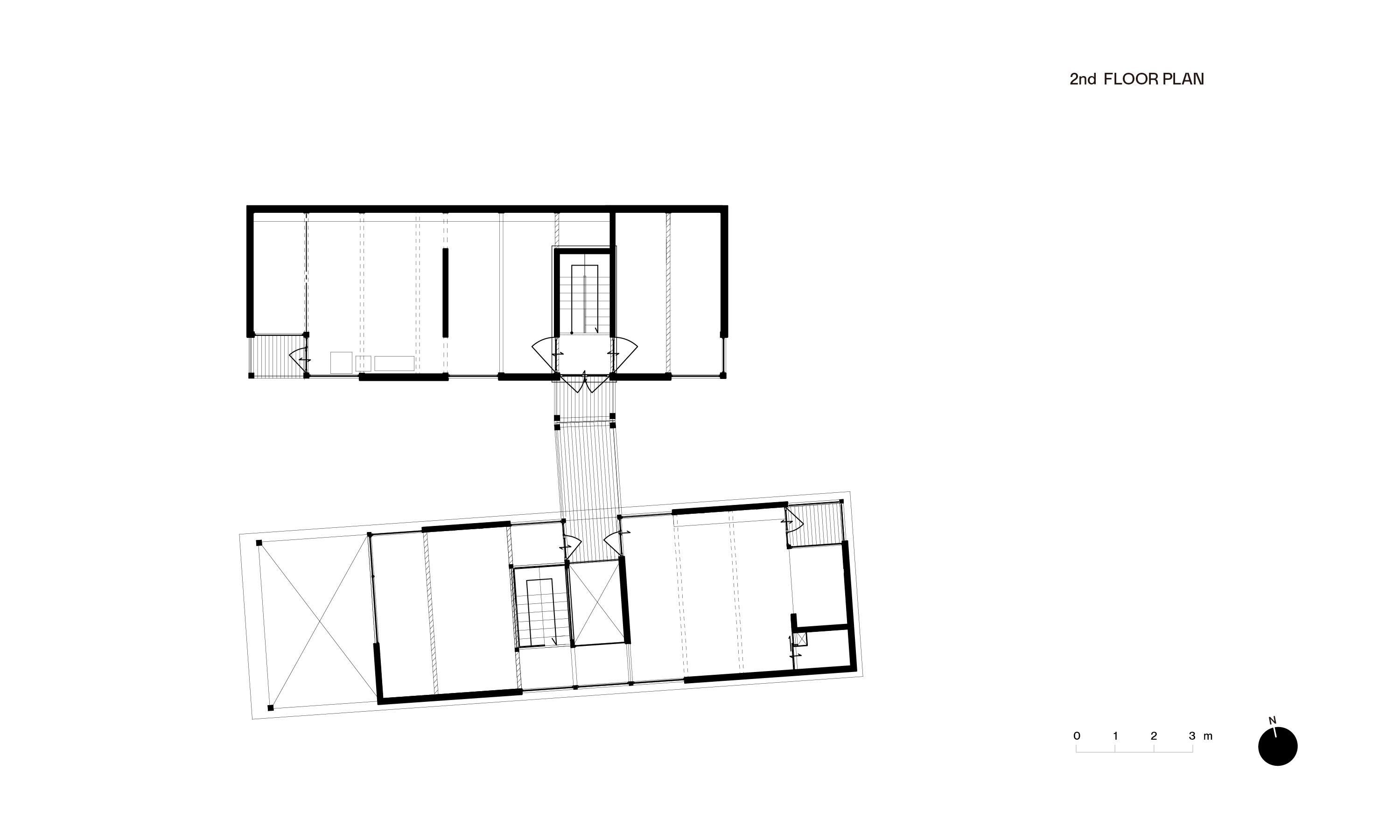 3階建と2階建が中庭とブリッジで繋がる、ユニークな事務所。