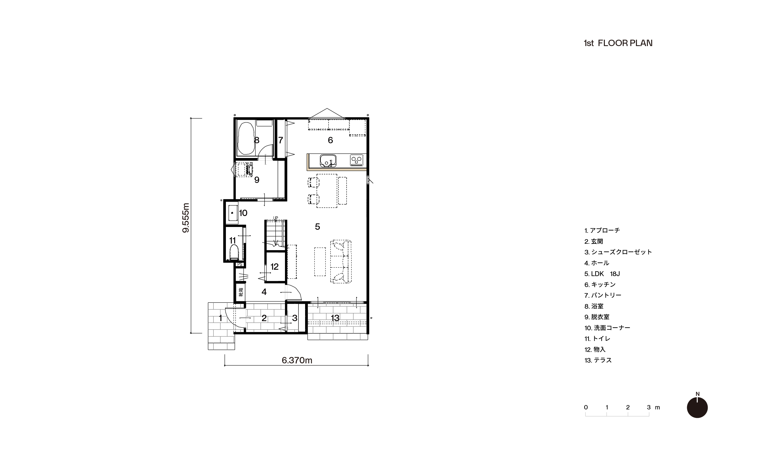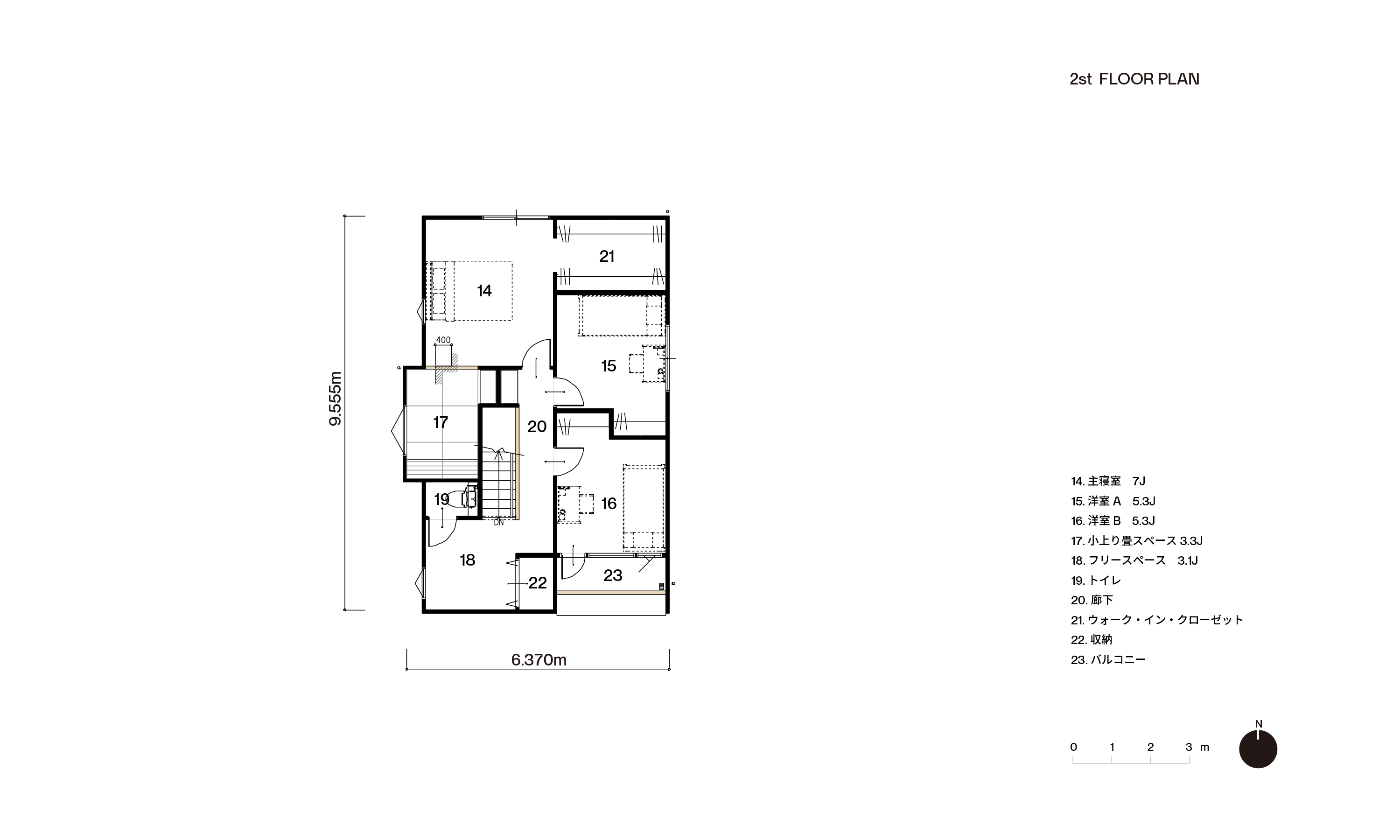 玄関から、共有空間のLDKと水回り空間の2つ動線で、効率的な生活動線を叶える住まい。2階は、3つの洋室に加え、趣味の時間に最適な畳の和空間や、家事、在宅ワークなどにも便利なフリースペースを配置。家族の衣類を一ヶ所に収納できるウォークインクローゼットなど充実したプライベート空間となっています。一人ひとりの生活に寄り添う心地よい住まいです。