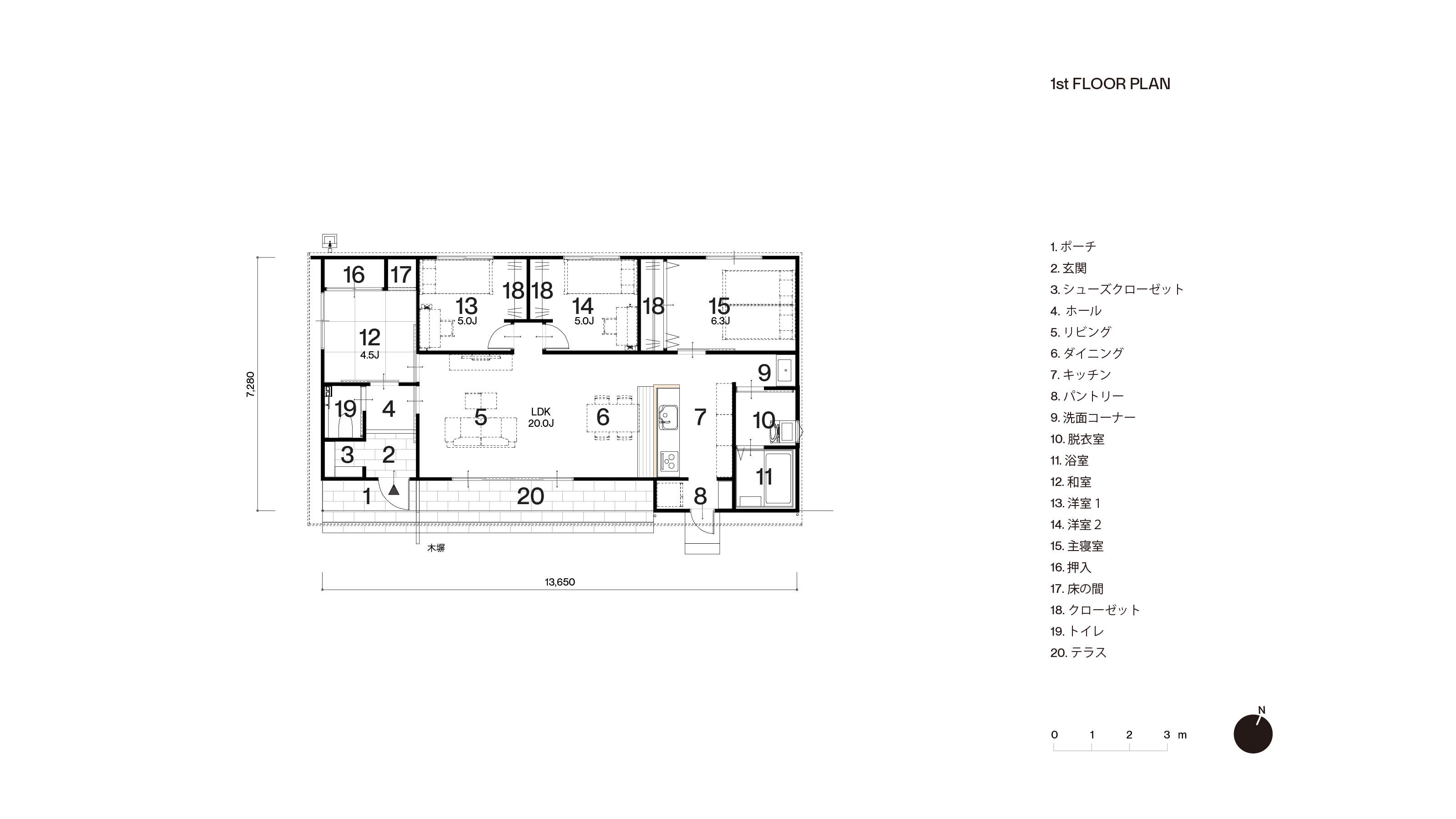 共有空間を中心とし、各部屋を配置した住まい。LDKからそのまま繋がるバルコニーは、DIYなどちょっとしたアウトドア空間として活躍します。玄関からすぐの和室は、くつろぎの空間としてはもちろん急な来客など臨機応変な空間活用が可能。ゆとりある収納スペースも確保した、住みよい暮らしを叶えるお家です。