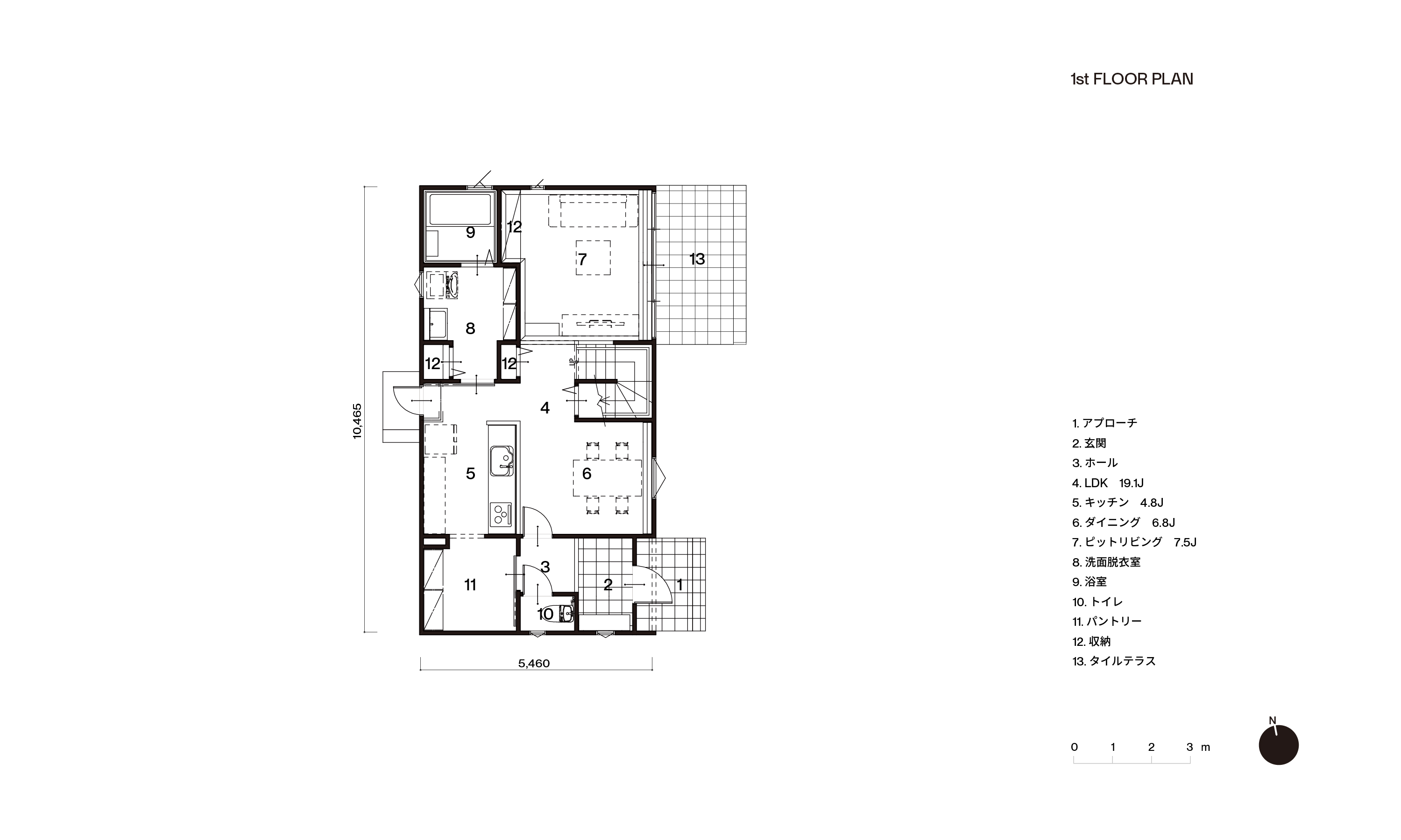 全居室収納に加え大容量のパントリー、主寝室のウォーク・イン・クローゼット、ウォークイン・シューズ・クローク他、贅沢に収納空間を設けました。フロアの高さが違うピットリビングは空間に奥行きが生まれ、ゆとりある暮らしを演出します。