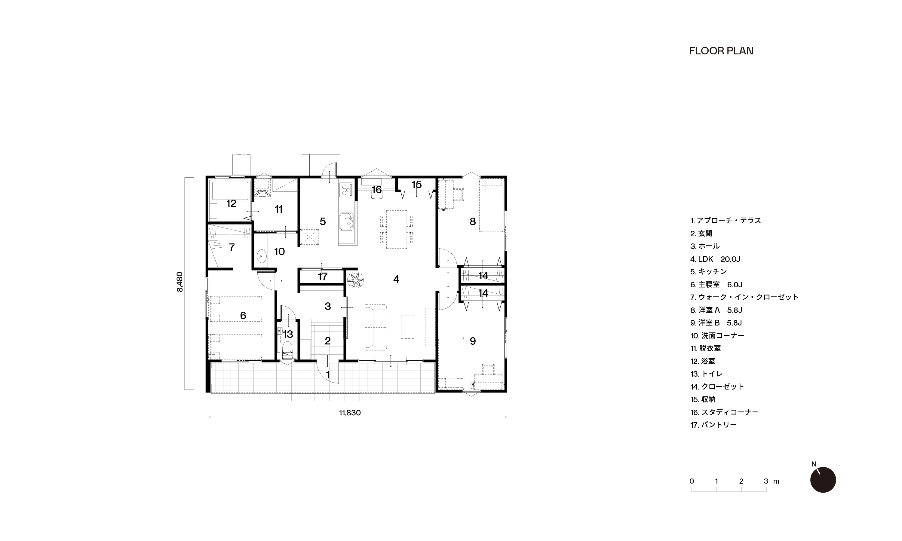 LDKを暮らしの中心に配置し、自然と家族がリビングに集まる暖かい住まい。ダイニング脇に設けたスタディコーナーは、キッチンからお子様の勉強を見守ったりちょっとした家事にも便利です。