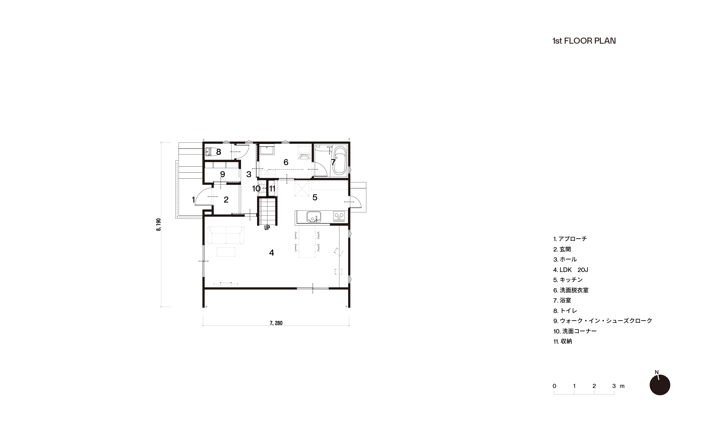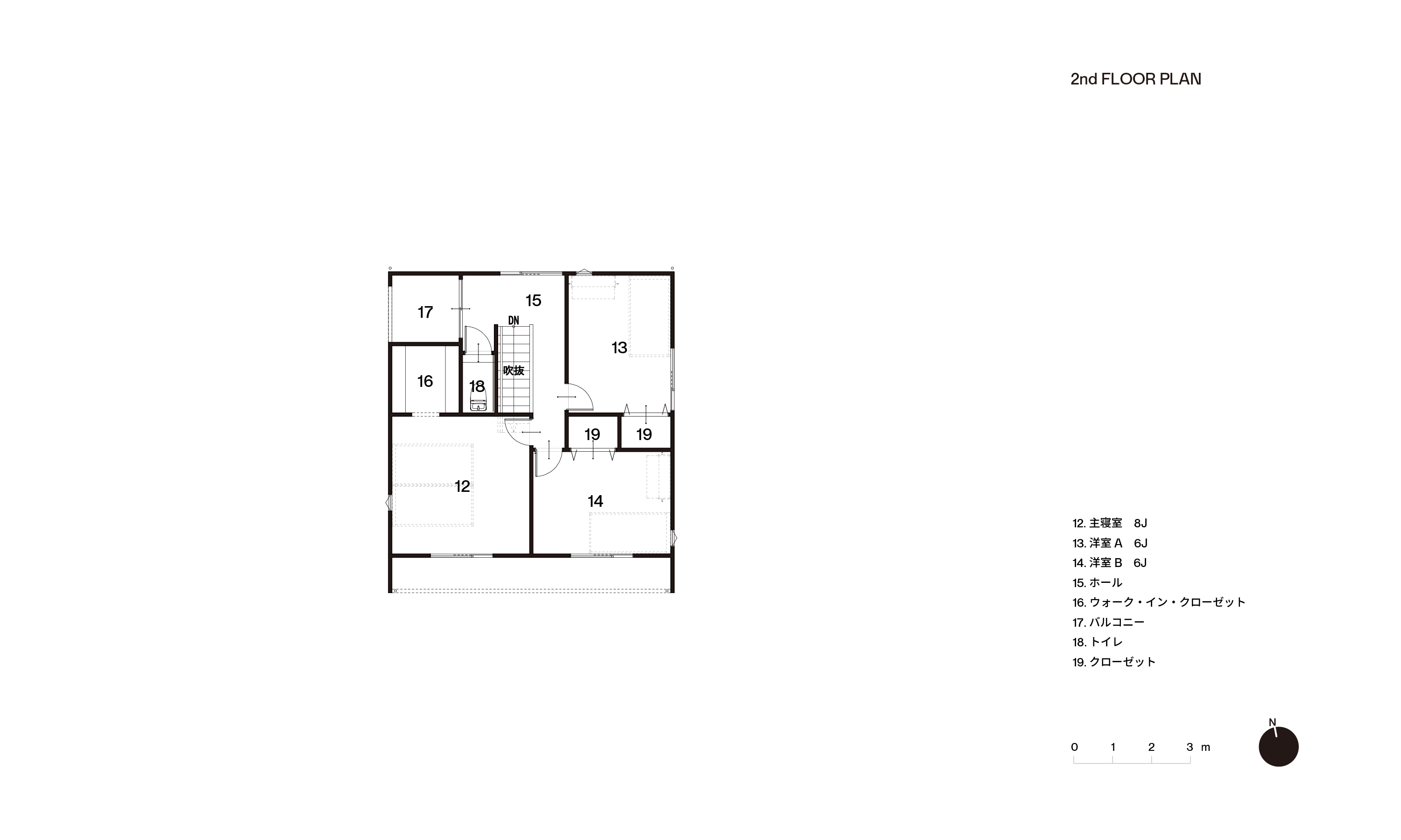 切妻屋根が美しいシンプルスタイルの住まいです。20帖のLDKをはじめ洋室も6〜8帖とゆとりある間取り。更に全居室収納に加え大容量のパントリー、主寝室のウォーク・イン・クローゼット、ウォークイン・シューズ・クローク他、贅沢に収納空間を設けました。リビング階段を中心にした回遊性のある家事楽動線を採用。