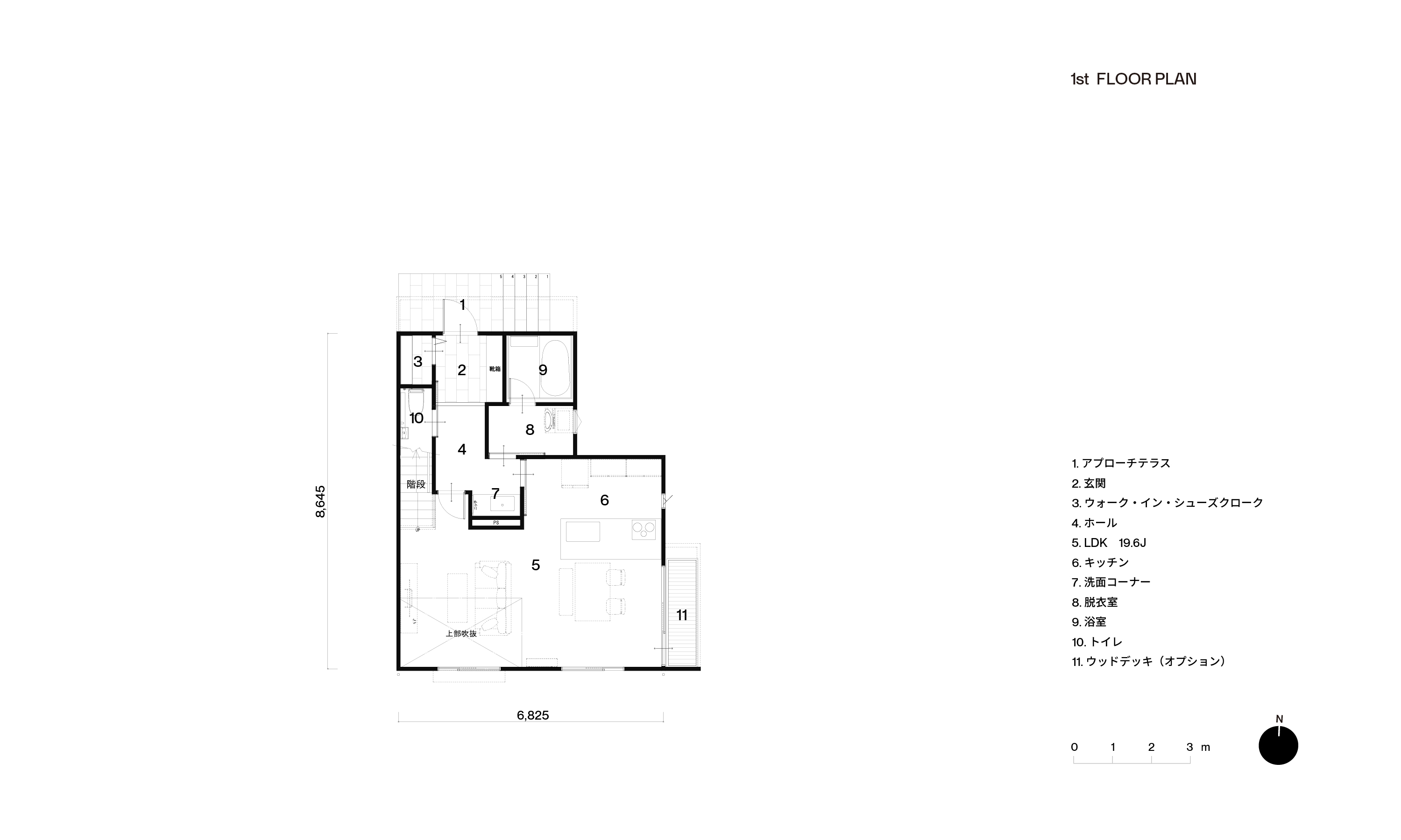 ホールからLDKへと繋がるお客様動線と、水回りへと繋がるお客様動線の2方向で住みよい間取り。収納付きフルフラットキッチンですっきりとした空間を叶えます。造作洗面台、2階にはスタディーカウンターを配置するなど個性も演出しています。