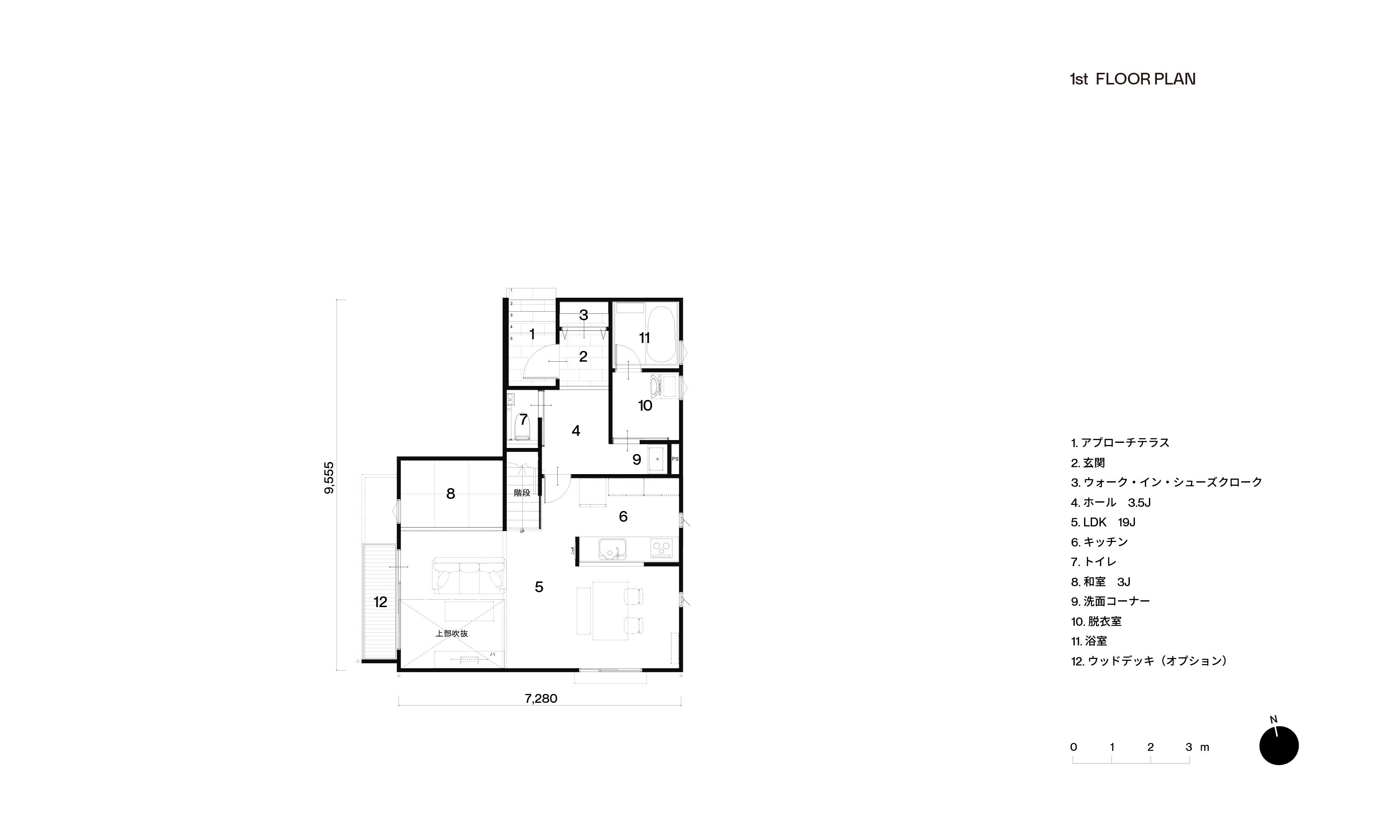 共有空間のLDKは、リビング上部を吹き抜けとし、くつろぎのスペースとして和室を隣接しています。