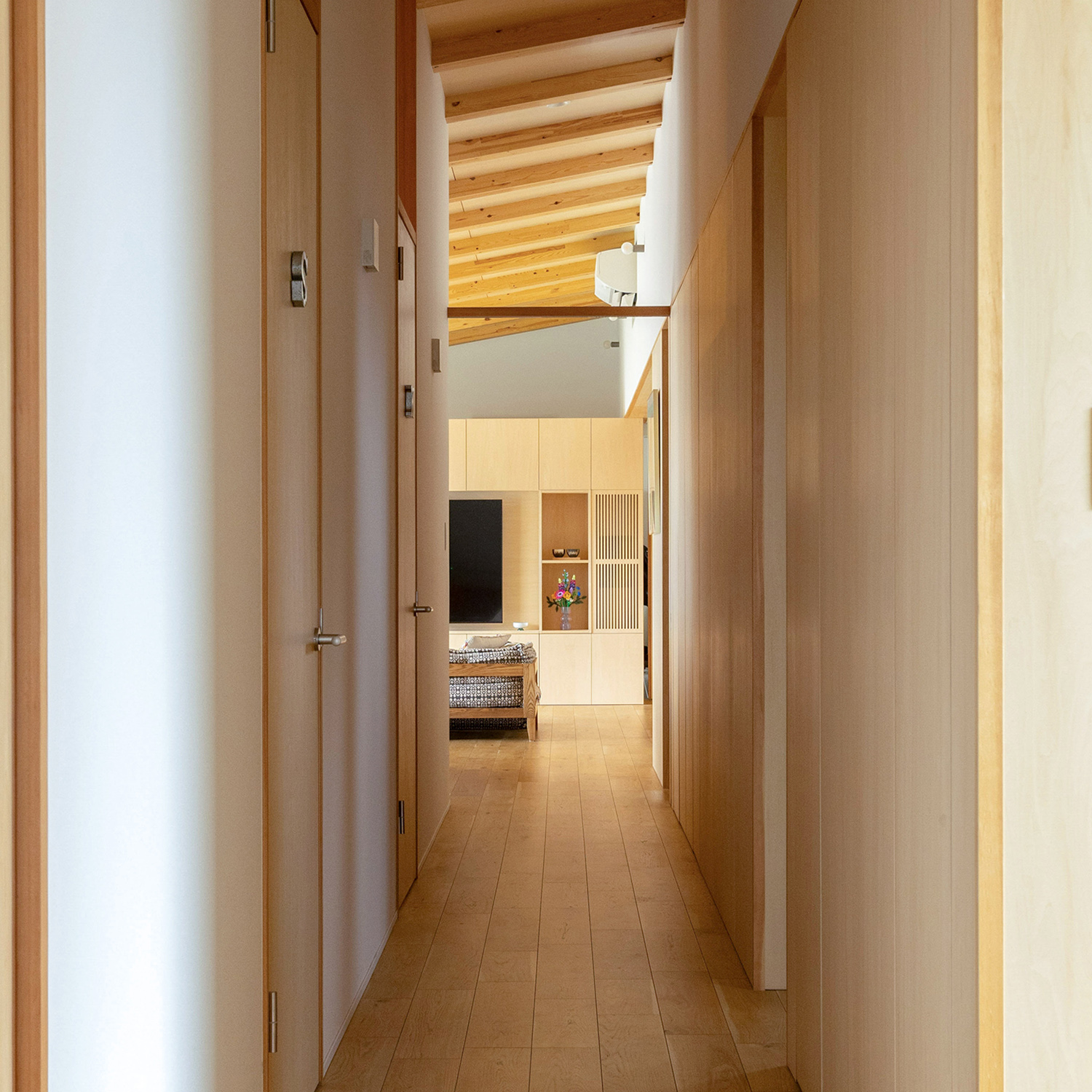 子どもたちの笑い声と、愛犬の走り回る足音。それを穏やかに見守る夫婦の笑顔。この家は、ただの住まいではなく、家族の未来を包み込み、日々の幸せを育む“大切な場所”そのものです。